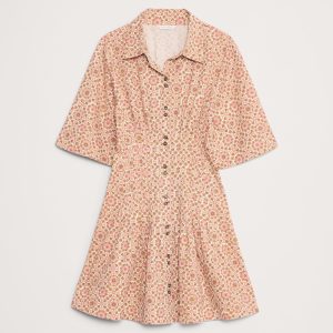 Deconstructed, reconstructed. This mini dress nods at the season’s drop-waist trend with corset-inspired pleats at the waist—in our 100% cotton poplin.