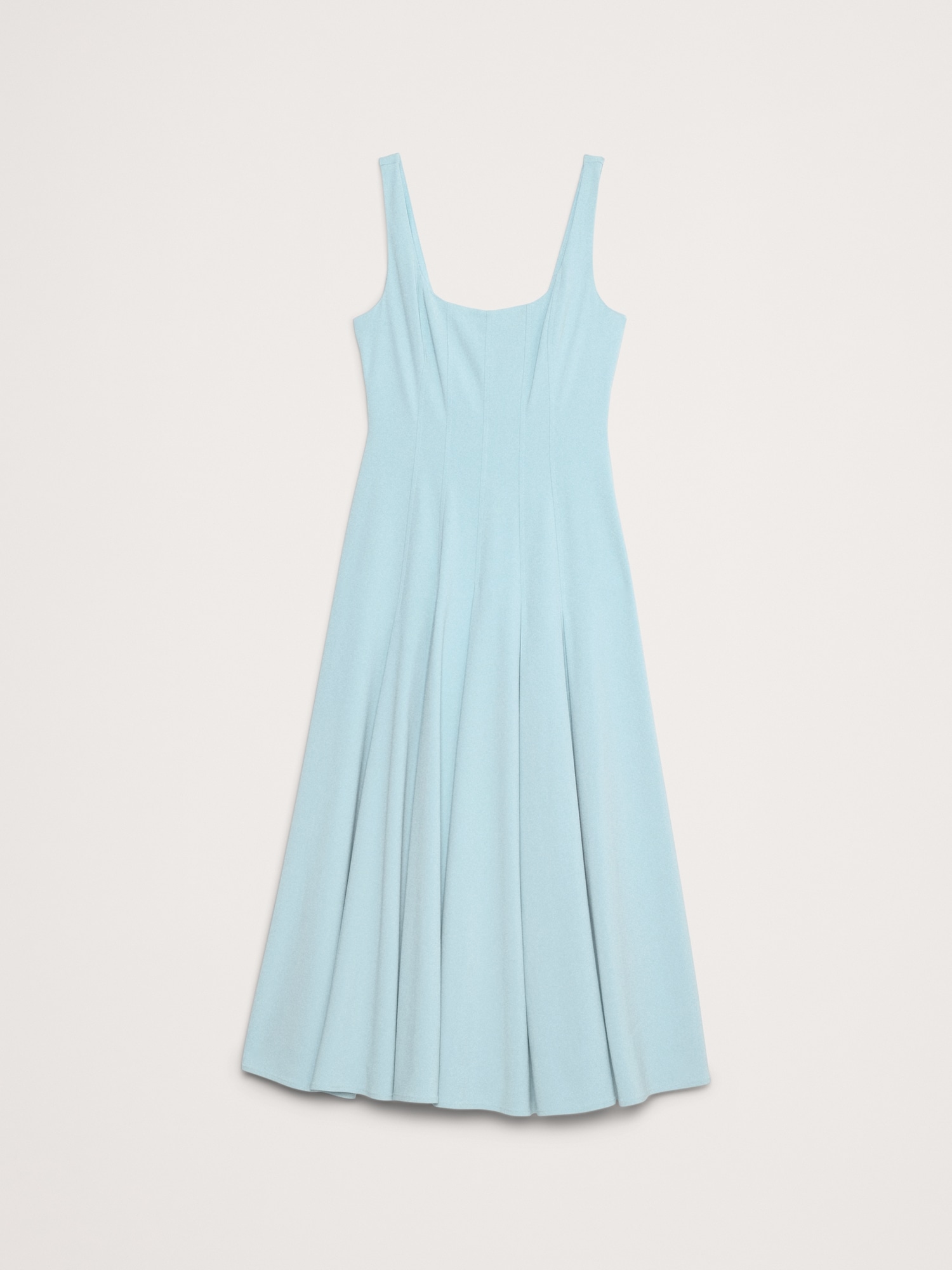 Crafted from a smooth sateen with subtle stretch, this fit-and-flare dress achieves its silhouette with an intricate paneled construction. Plus, the ankle length looks great with heels or flats.