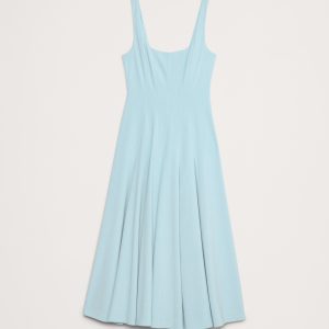 Crafted from a smooth sateen with subtle stretch, this fit-and-flare dress achieves its silhouette with an intricate paneled construction. Plus, the ankle length looks great with heels or flats.