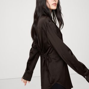 A very cool shirt. We cut this one in an easy fit from our silky, stretch-satin and added a drawstring detail at the back to define your waist.