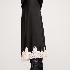If you like the finer things in life. We cut this skirt from a stretch-satin fabric we love because it looks (and feels) fabulous on, with a lace hem accent.