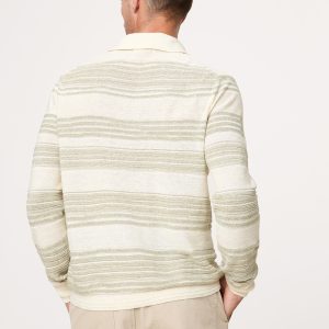 We’re on a mission to make a better-than-vintage sweater polo. Here, a cotton-linen yarn alternates colors to create a retro striped effect with texture.