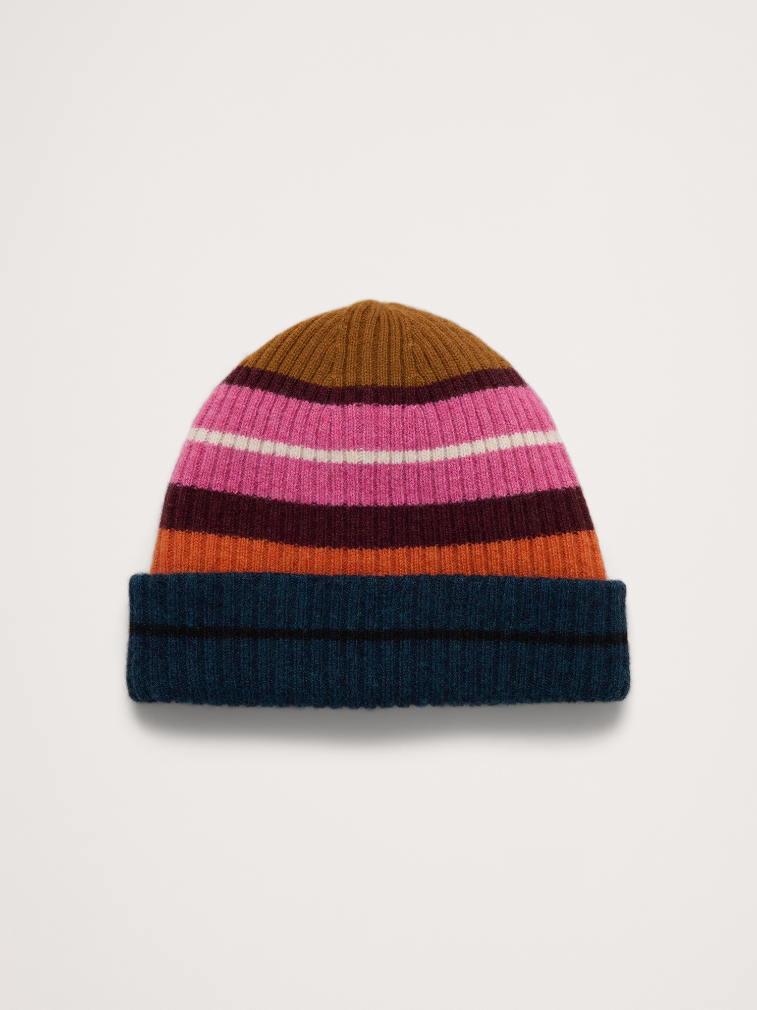 So soft, so warm, this classic stripe beanie is knitted in our softest Merino wool blend from Italy.