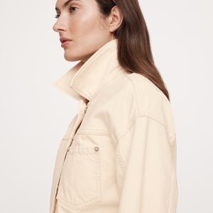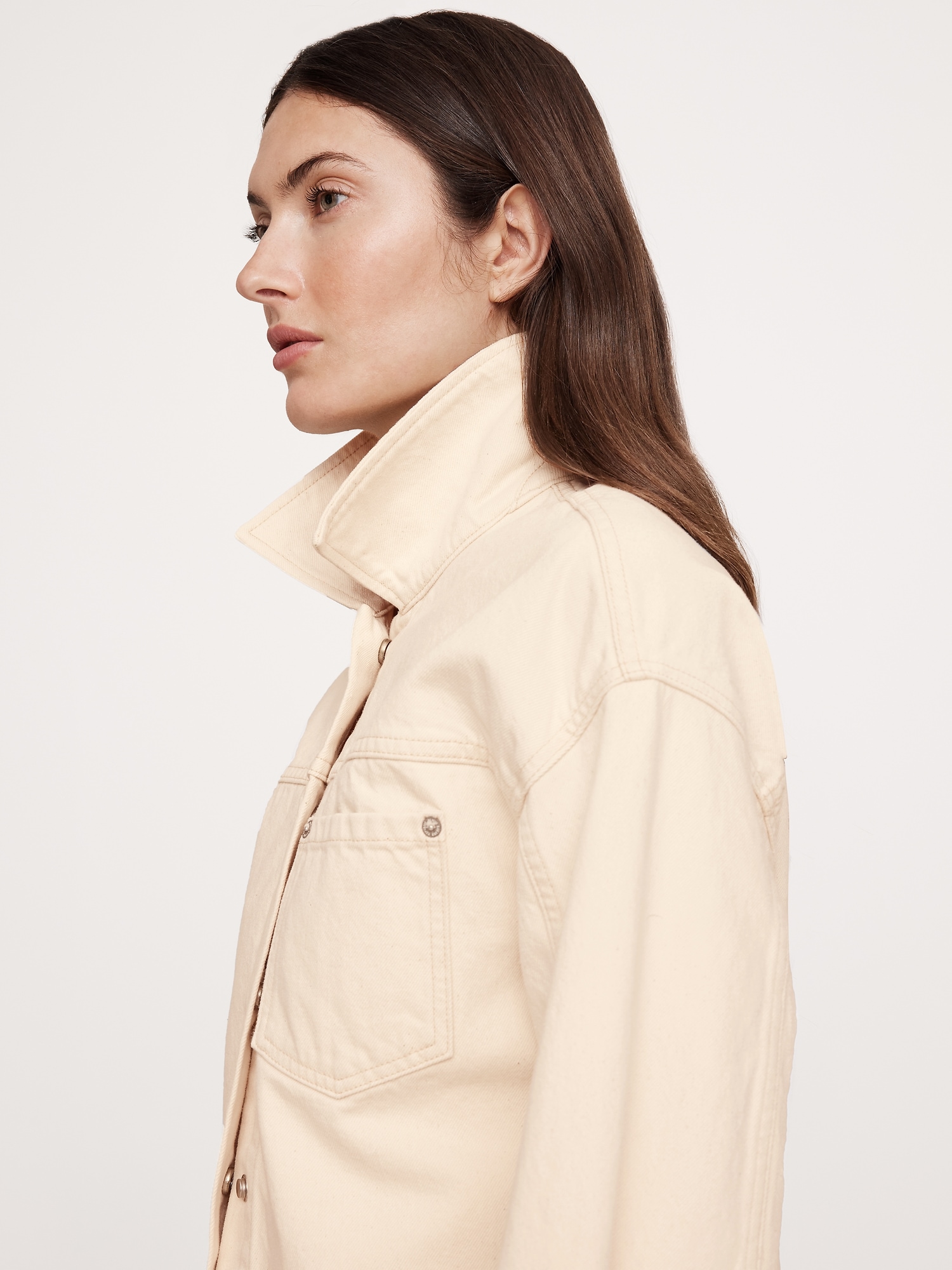 An invitation to play with proportions, this jacket borrows its silhouette from vintage trucker jackets. Our design team updated it with a belt at the back to cinch in the waist—looks great with high-rise jeans.