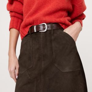 A luxurious take on a utilitarian silhouette, we cut this mini skirt is beautiful and soft goat suede with paneled, utility pocket details.