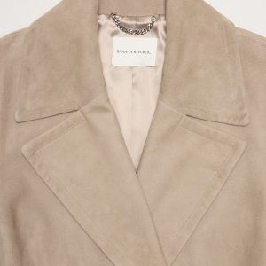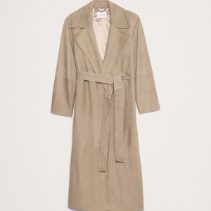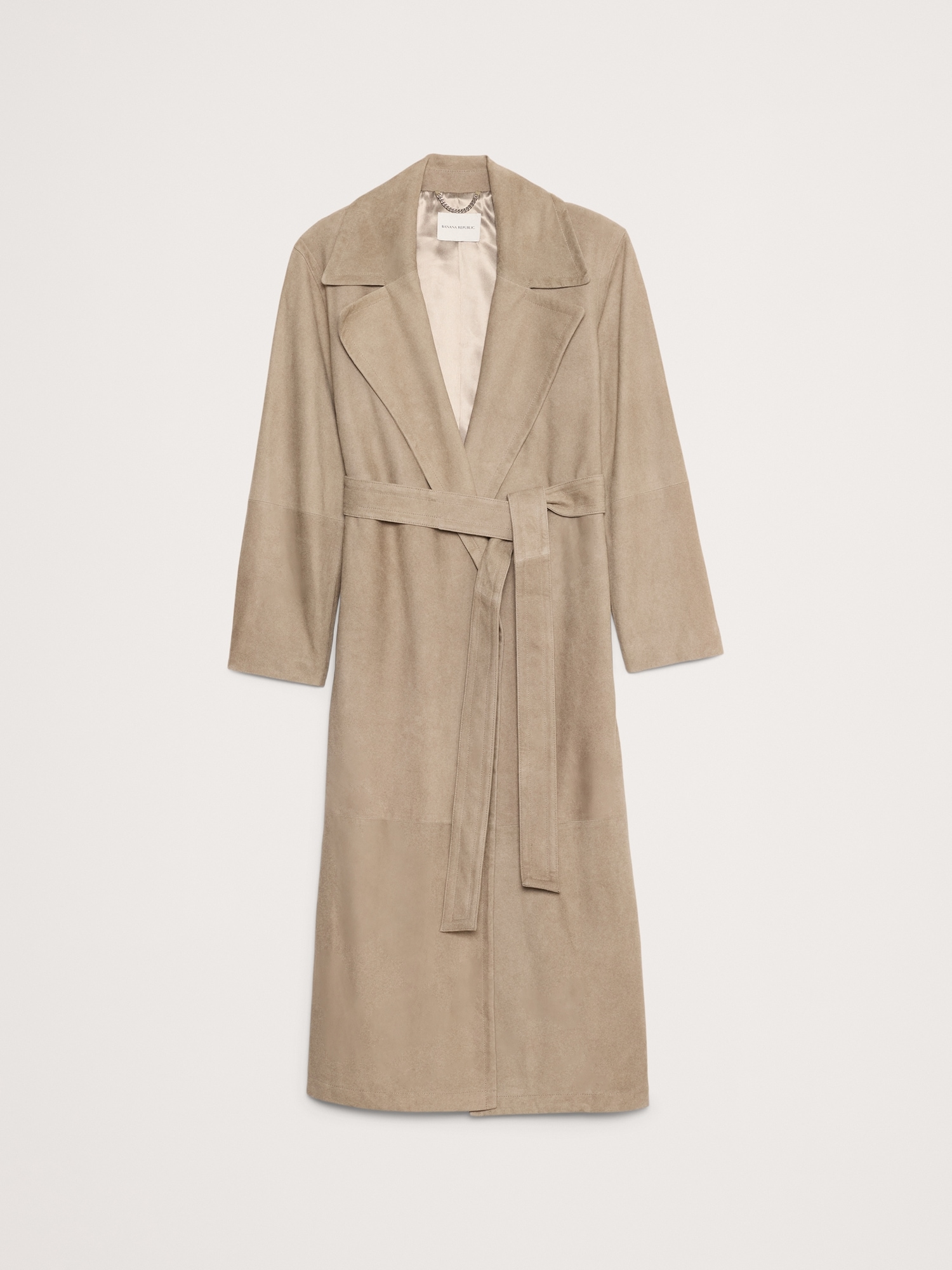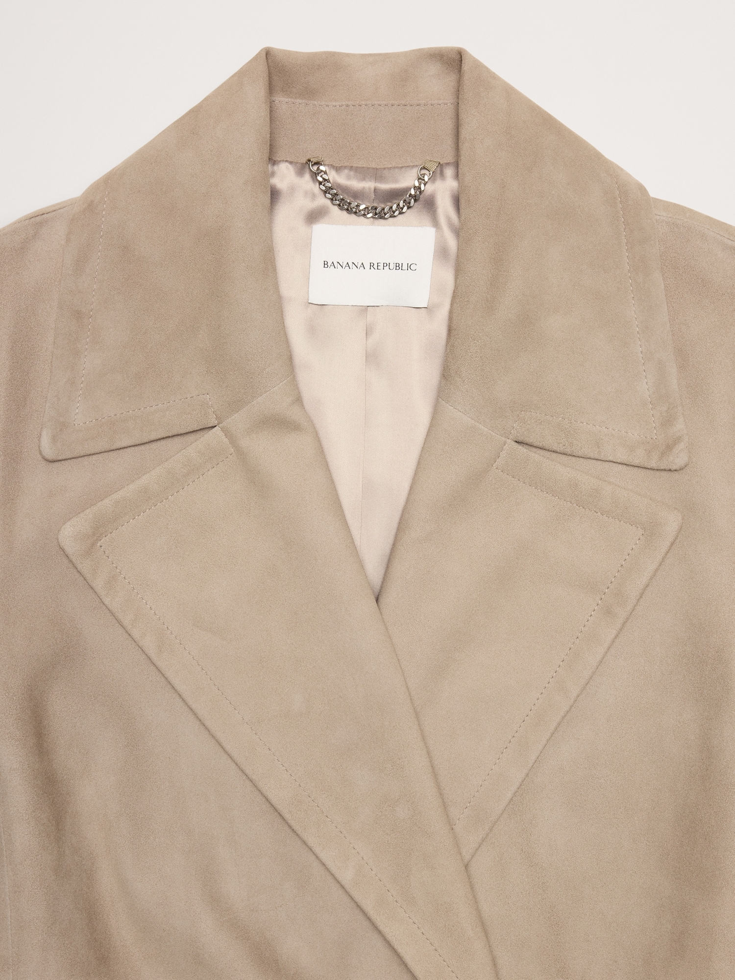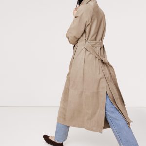 We reimagined the timeless trench coat, preserving the utilitarian vibe of the original with wide lapels, a belted waist, and shoulder epaulettes—crafted in premium suede in one of the world’s most renowned ateliers. Since it’s suede, it will only get better with time, developing a rich and unique patina.