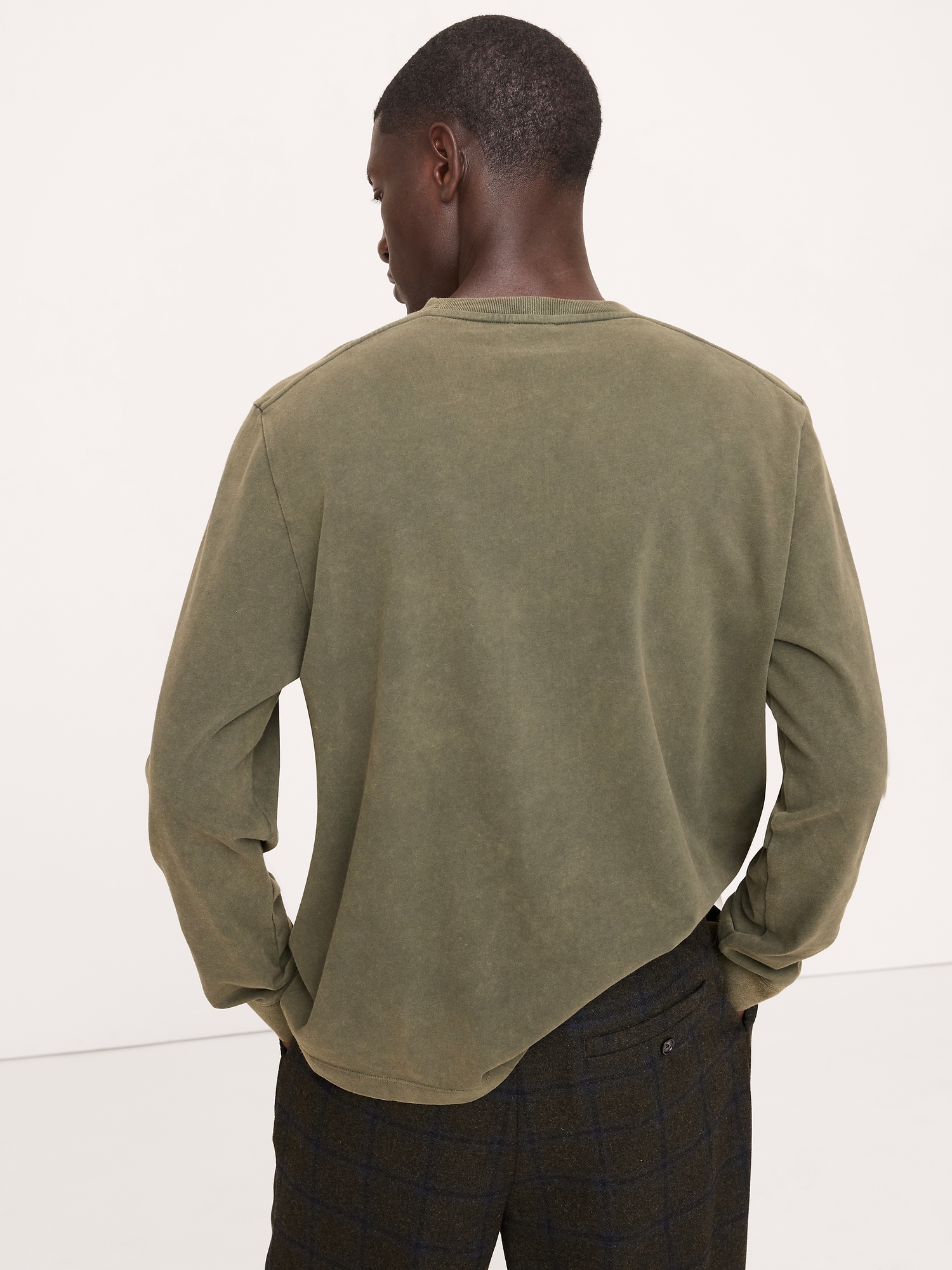 We’re on a mission to create a long-sleeve tee that feels like the best vintage finds. This one delivers a vintage, sun-faded look with a soft hand-feel, on-trend shorter length, and a 100% cotton jersey that clocks in at 320gsm (so it’s about twice as heavy as our other tees).