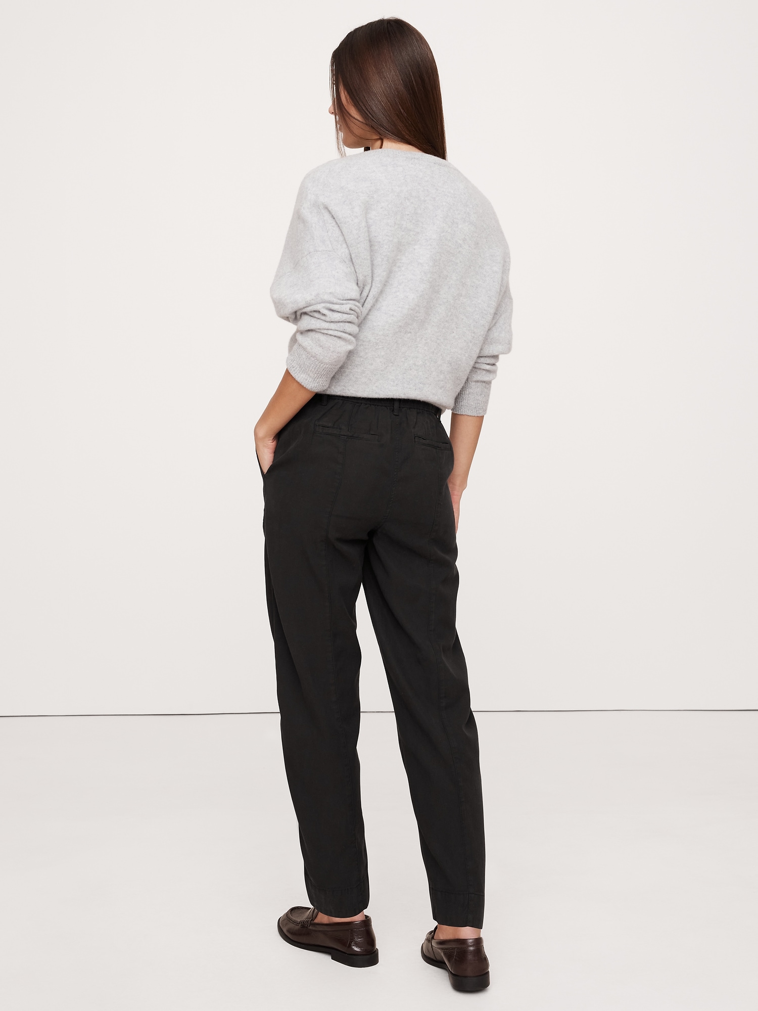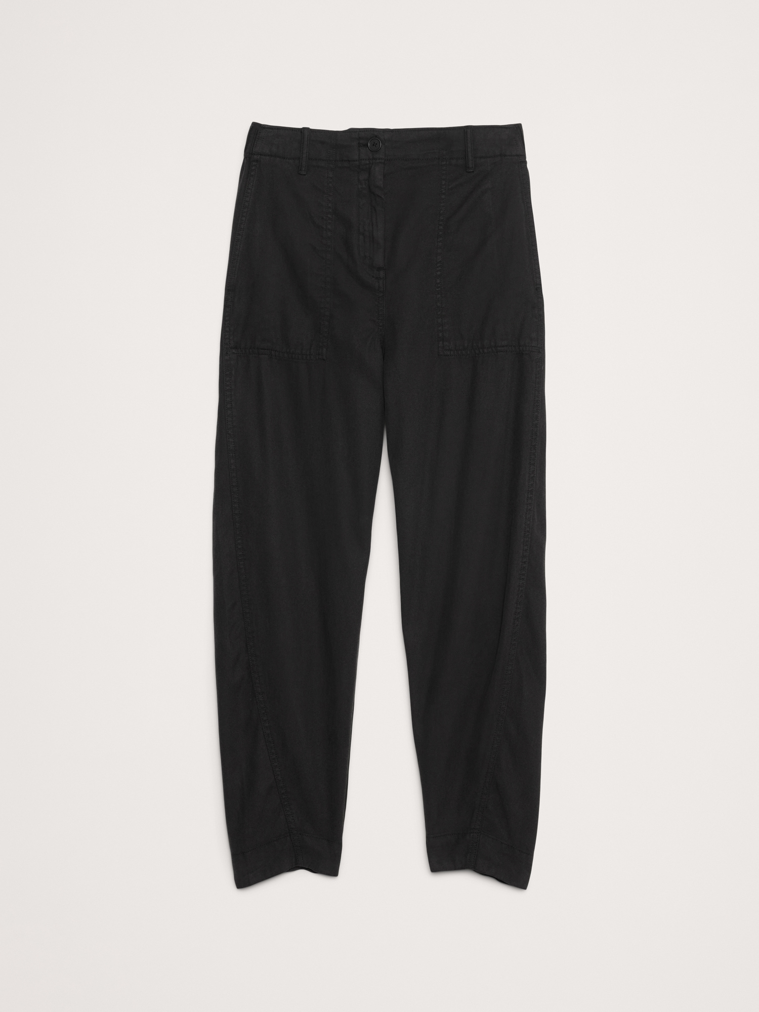 Our take on the season’s barrel-leg styles, we kept things leaning rugged-utility with topstitch detailing while this ultra-soft fabric made with TENCEL™, cotton, and flax keeps things feeling dressed up.