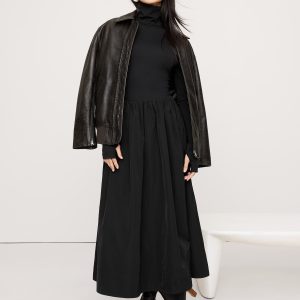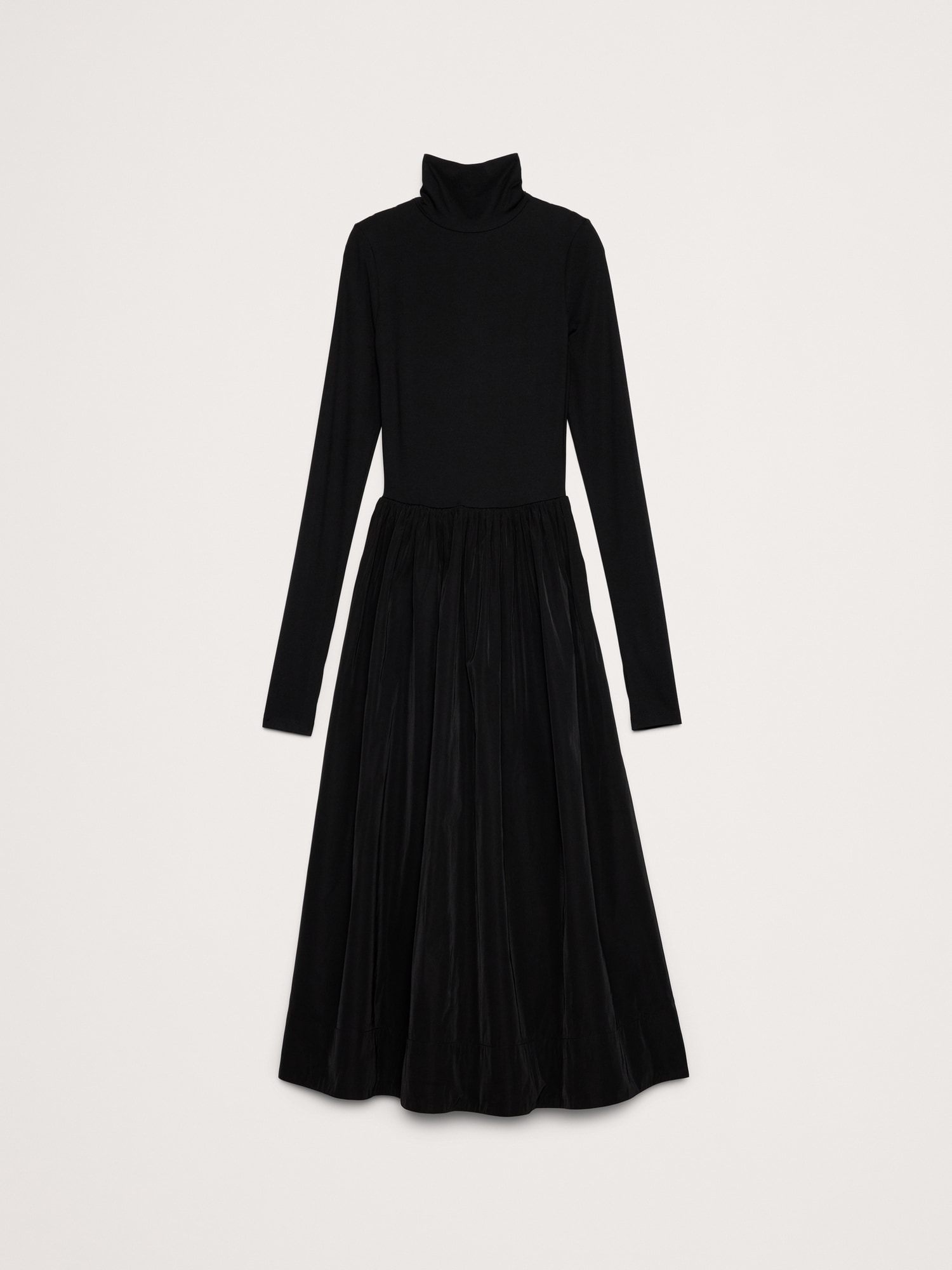 Taffeta Combo Turtleneck Maxi Dress