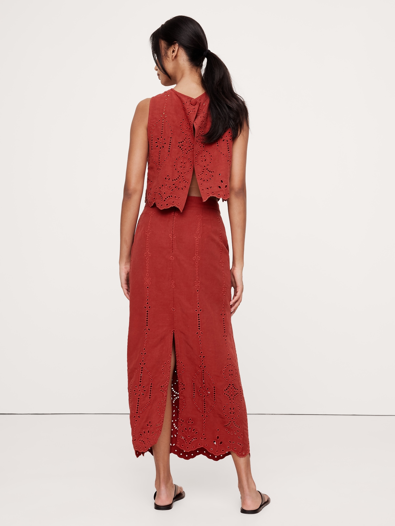 Prepare for compliments. We cut this maxi skirt in an heirloom-level eyelet fabric that blends silky TENCELâ„¢ and breathable linen. Make it a set with the matching tank.