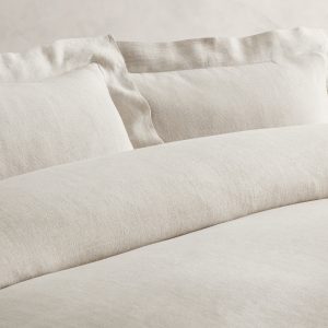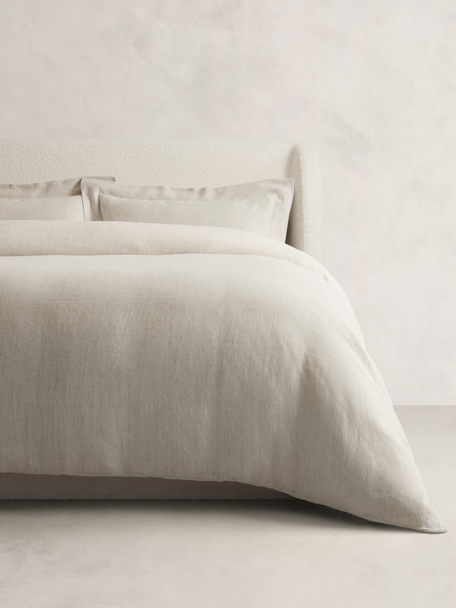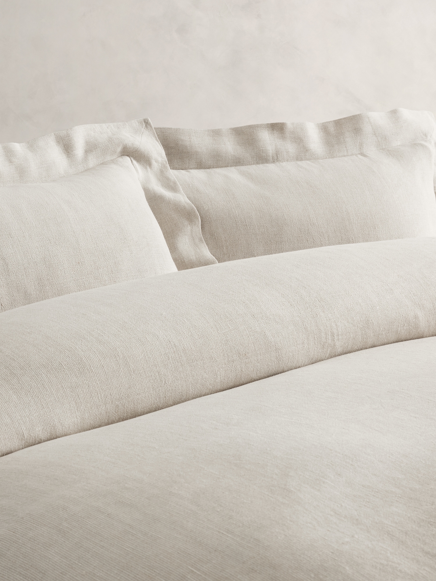 Distinguished by its refined look and rich, natural texture, our duvet cover is loomed from all-weather European linen for year-round comfort. Woven with a subtle stripe that adds tactile dimension to the tonal palette, we pre-washed it for a relaxed, yet crisp feel. Pairs with the matching shams for a cohesive look.