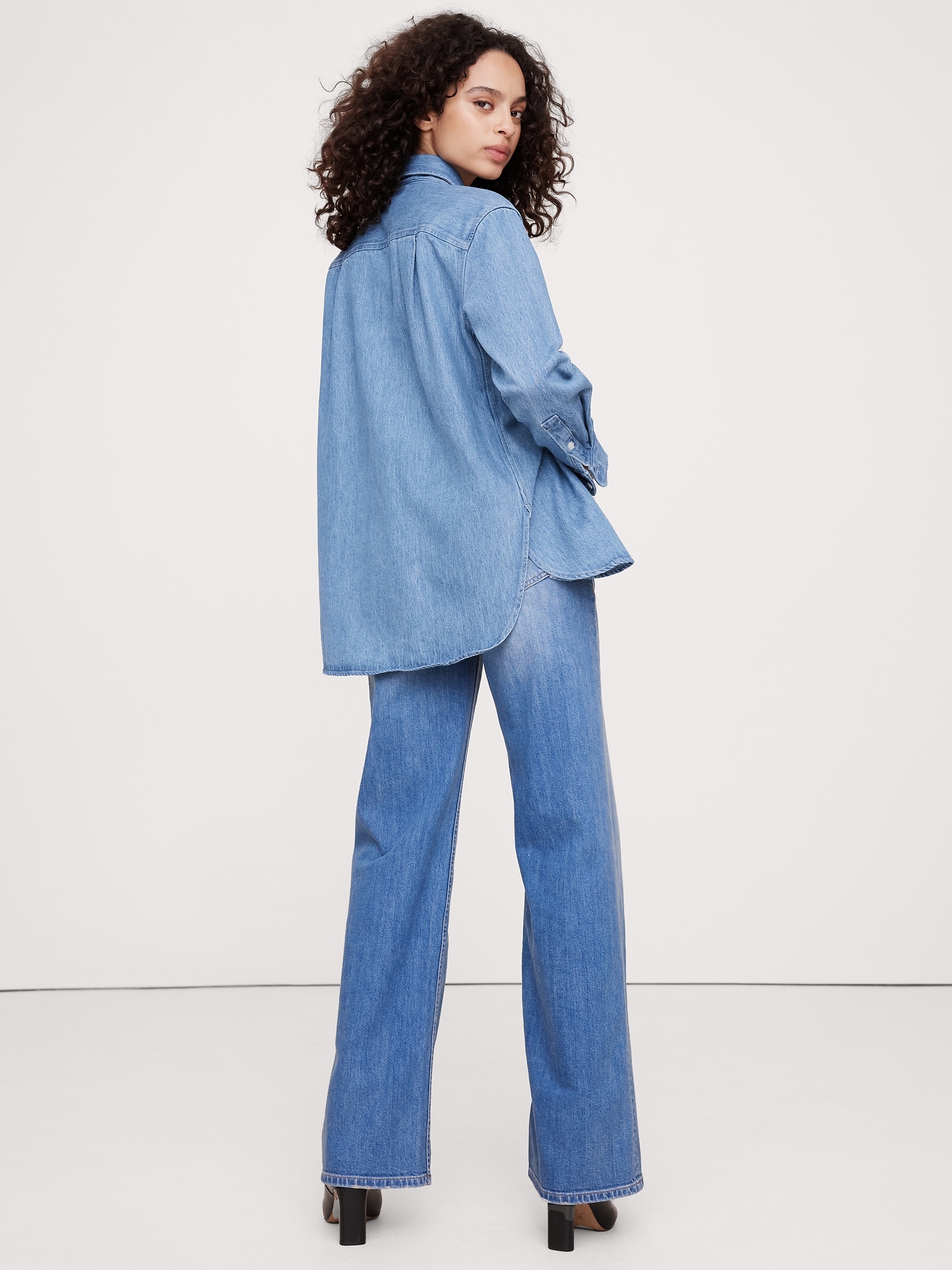 Back and better than ever. We updated the fit on our best-selling Oversized Shirt by taking it in slightly at the shoulders, waist and sleeves to create the ideal, effortless button-down top. We cut this one in our signature denim shirting fabric—heavier than chambray and oh-so-soft.