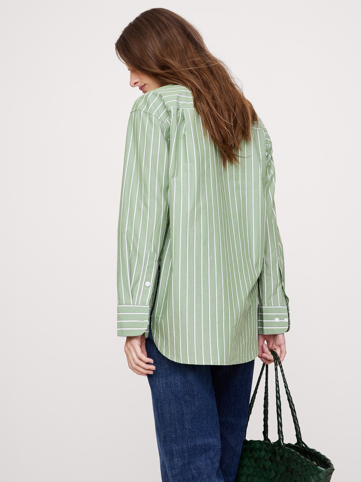 Back and better than ever. We updated the fit on our best-selling Oversized Shirt by taking it in slightly at the shoulders, waist and sleeves to create the ideal, effortless button-down top in premium 100% cotton poplin. Oversized fit: Extra room through chest, shoulders, and waist. Point collar with button-front closure. Shirttail hem. Unlined. #709273
