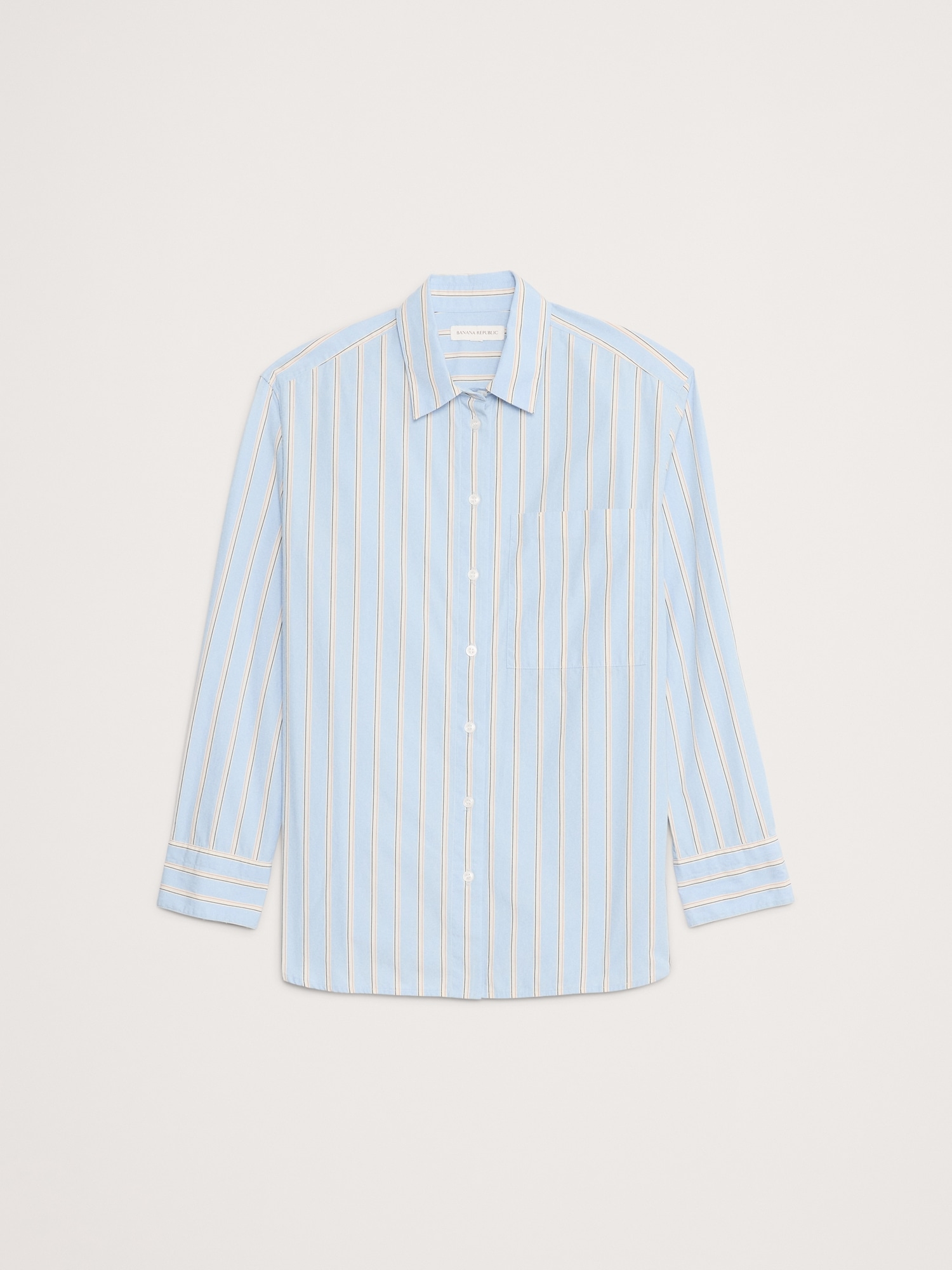 Back and better than ever. We updated the fit on our best-selling Oversized Shirt by taking it in slightly at the shoulders, waist and sleeves to create the ideal, effortless button-down top in premium 100% cotton poplin.