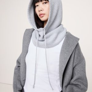 A cozy knitted balaclava with a drawstring closure to keep the elements out.