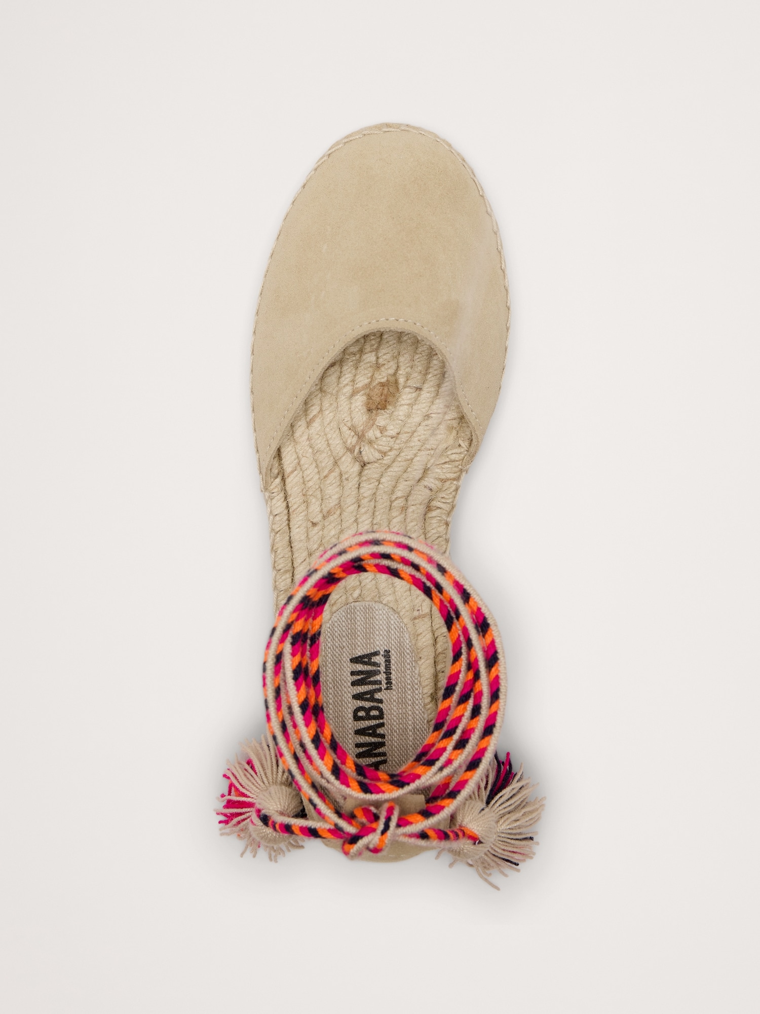 A reimagining of the classic Valencian espadrille, finished with a cord and pom-pom tie hand-crafted by Wayuu artisans.