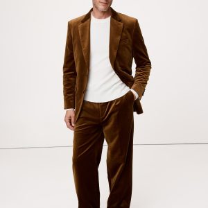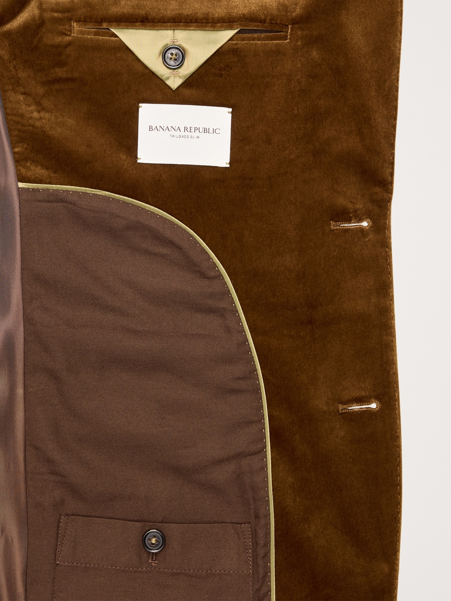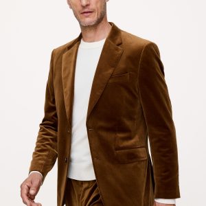 We selected a soft cotton velvet for this statement blazer, cutting it pile-up to enhance its luster and finished with an English-style roped shoulder, which adds a bit of structure and a more formal appearance.