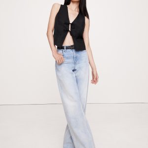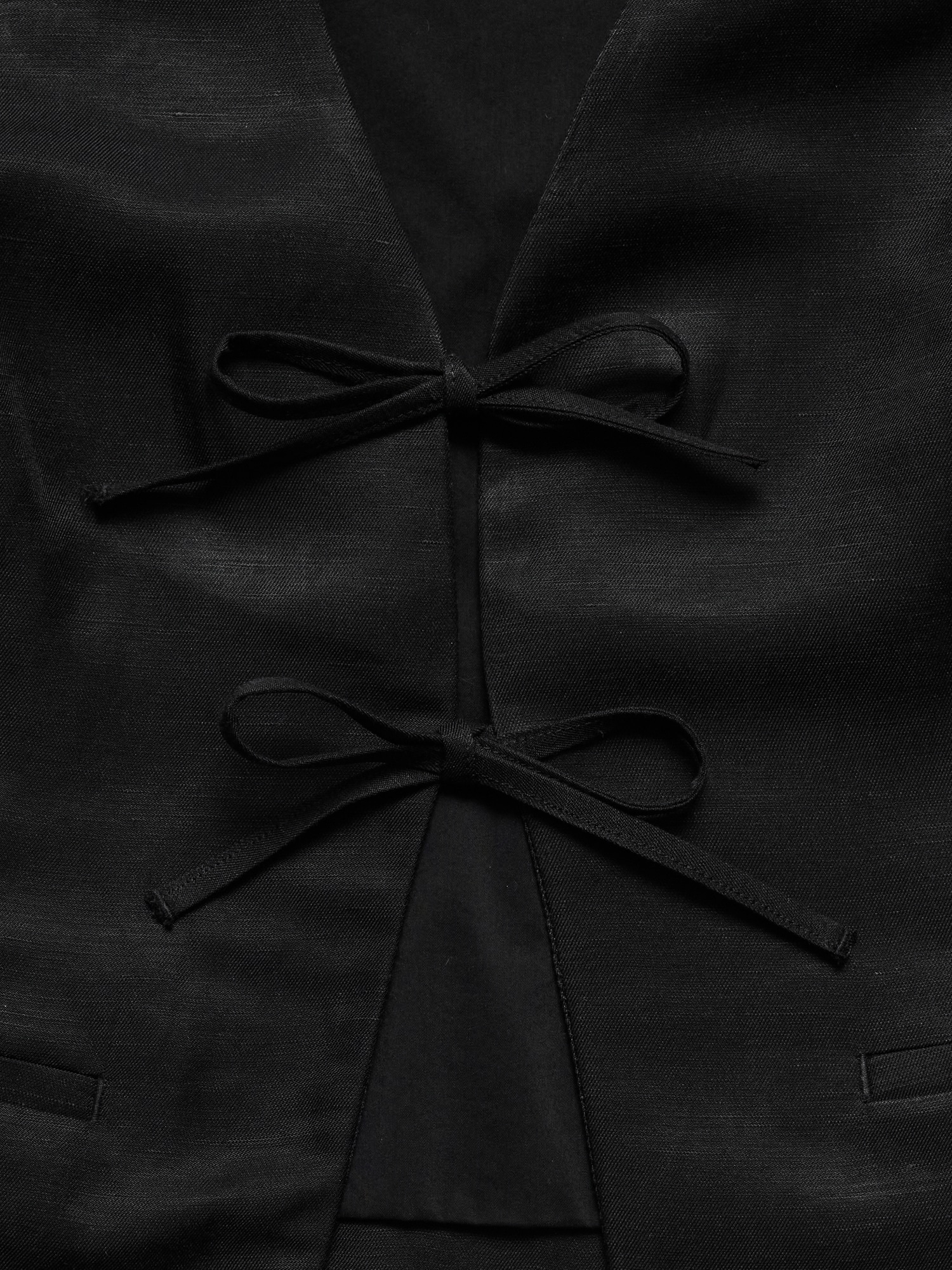 An easy tie-front vest, cut in a silky blend of viscose and linen—an ideal choice in hot, humid weather. Make it a set with the matching pant.