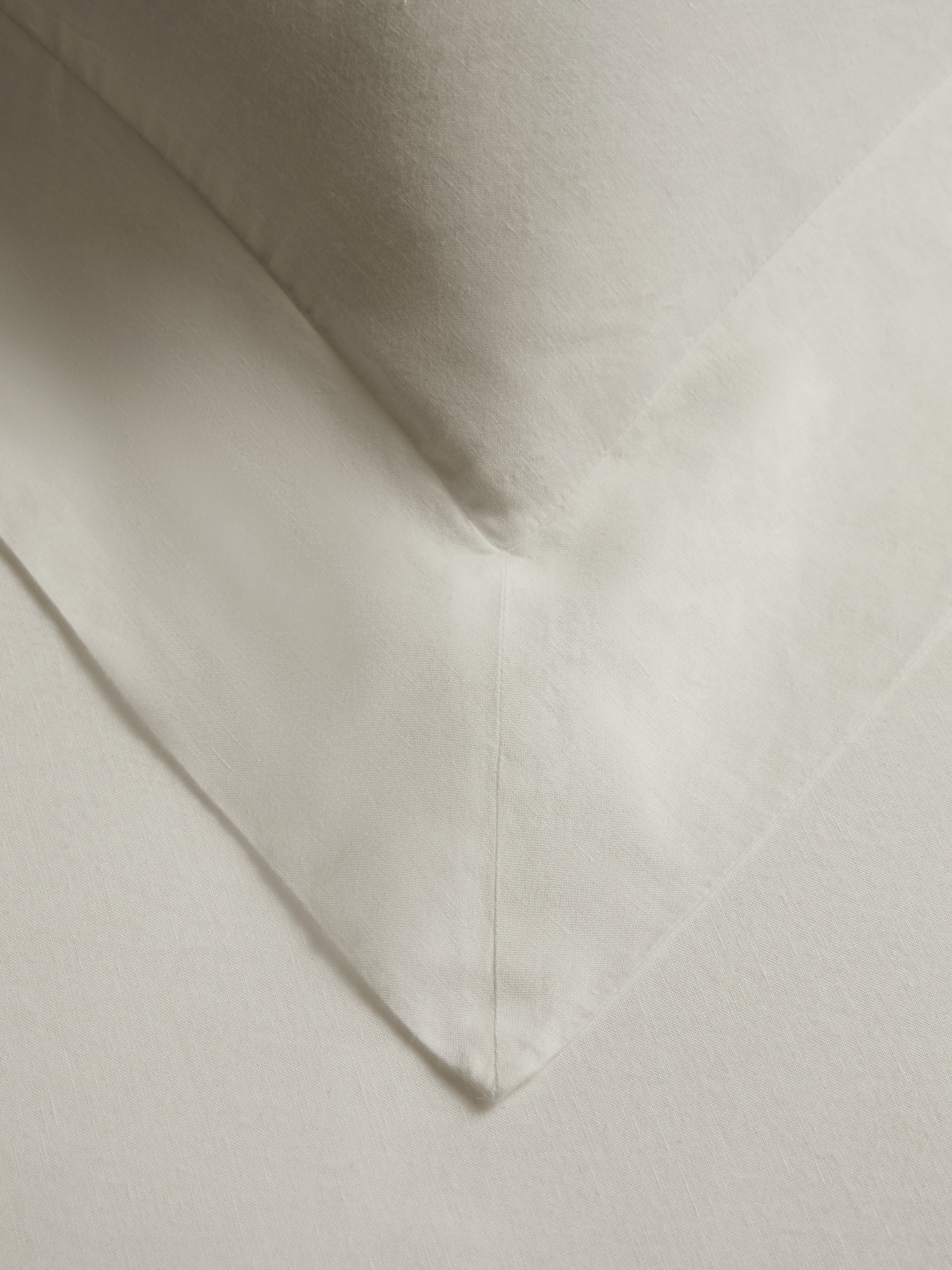 Unwind with legendary softness, our Washed Linen-Cotton bedding fuses the impeccable properties of crisp, ultra-soft organic cotton and luxurious linen—beloved for its ability to stay cool and crisp even in heat and humidity.