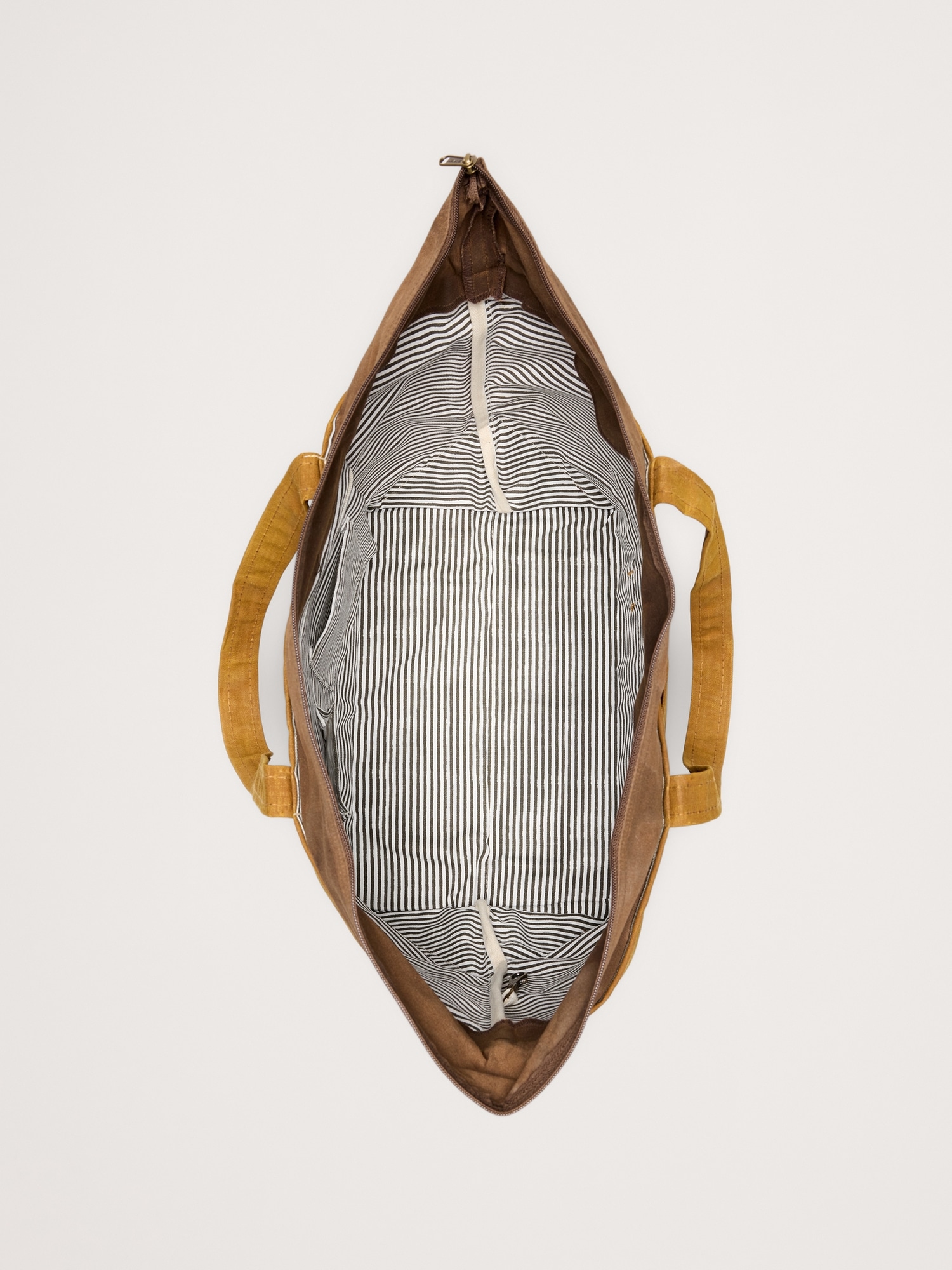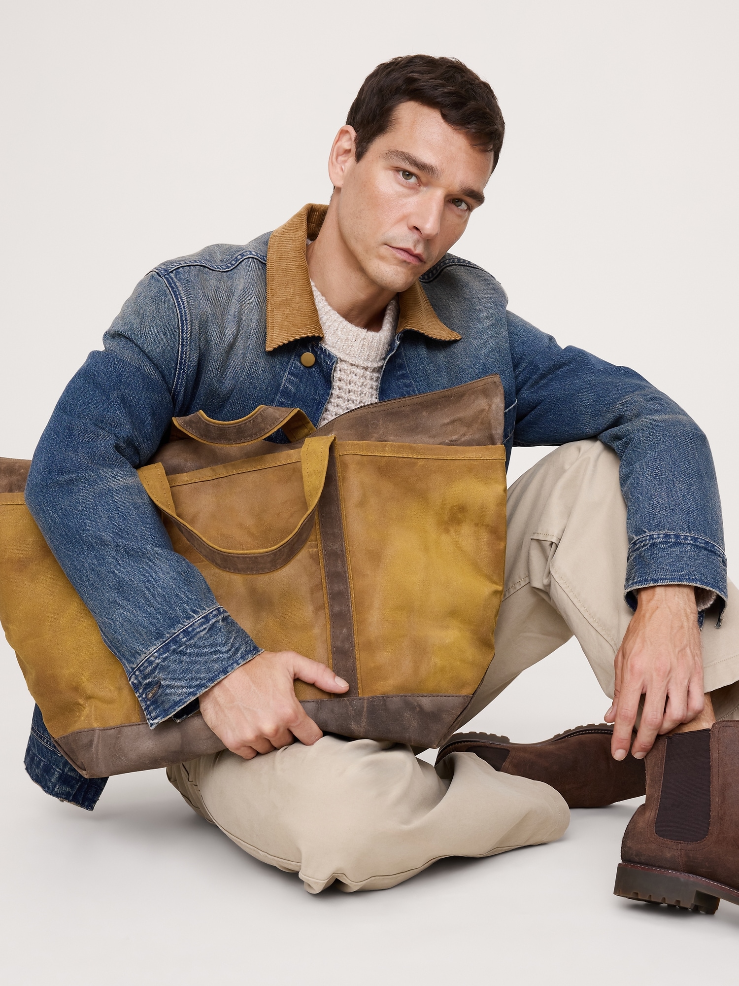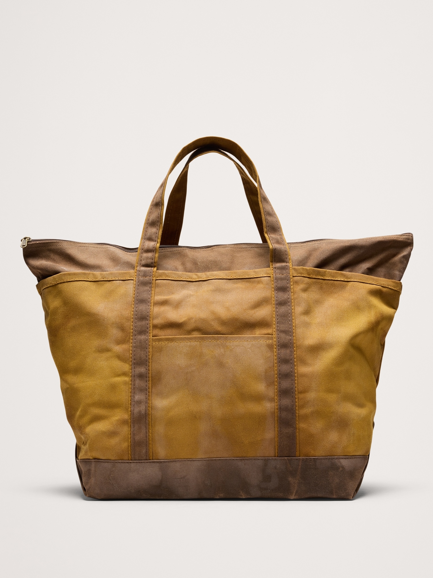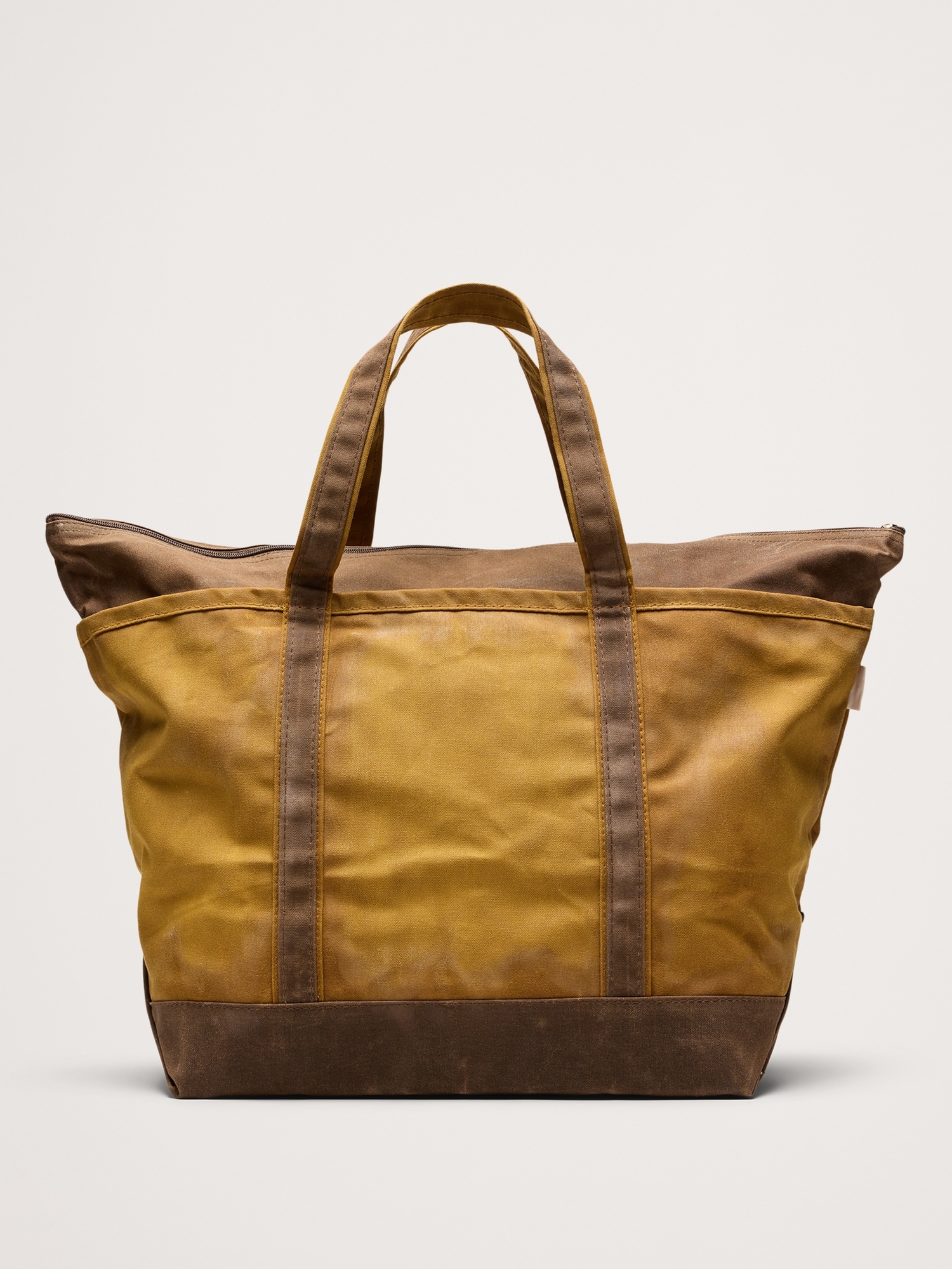 Cut from sturdy 18-oz. cotton canvas, this classic tote is finished with a waxed coating that protects it from the elements and develops a rich patina with use. Plus, it has an outer pocket for ease access to phones, keys, cards, etc.