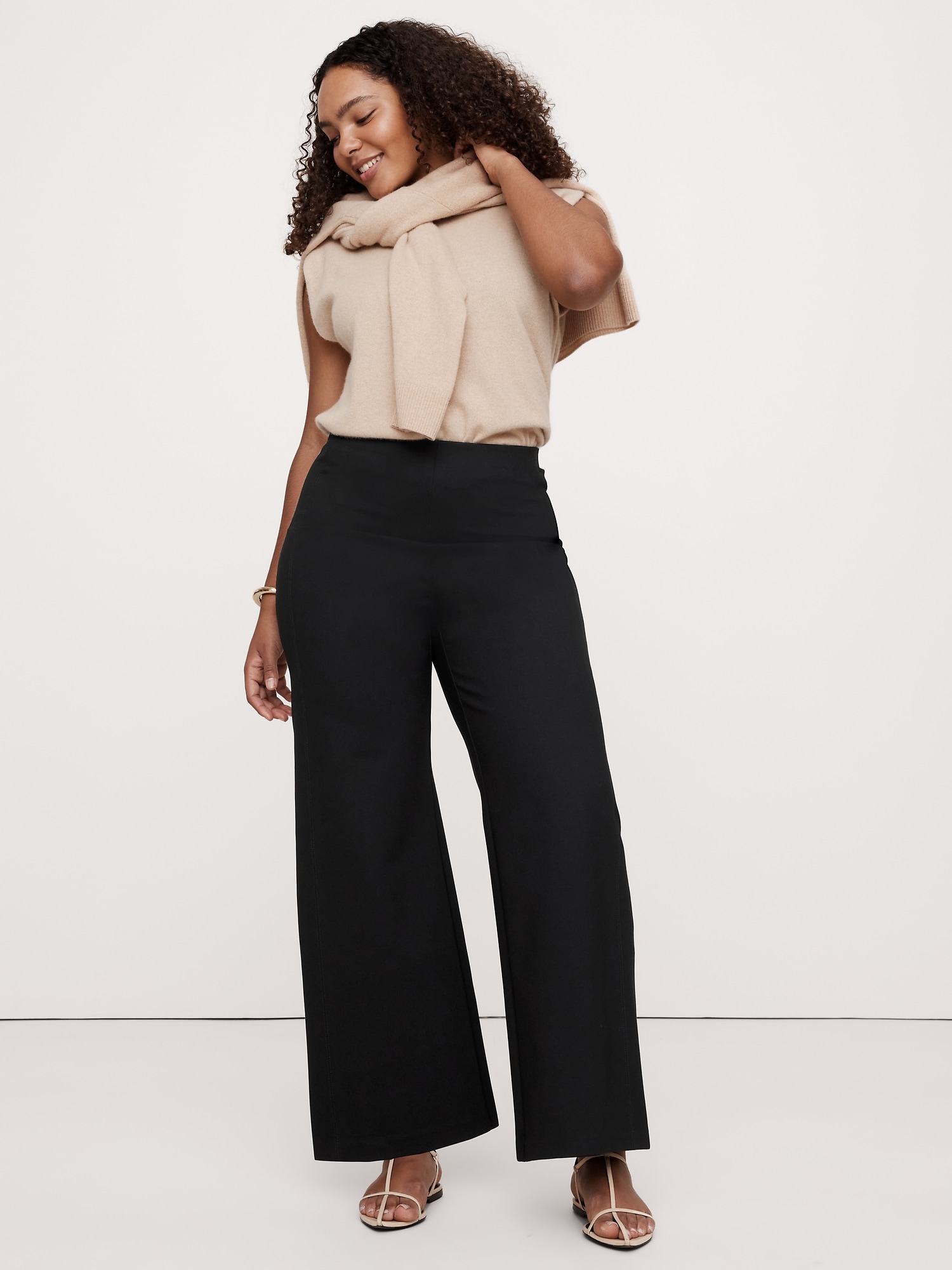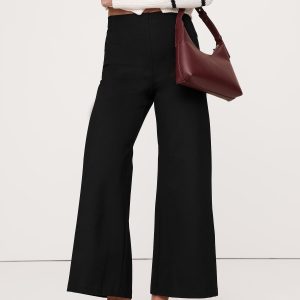 Wide-Leg: High rise (11\”) fitted waist and hip, relaxed through the thigh with a wide leg. Cropped length.