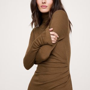 Just what we needed. This maxi dress is anything but basic thanks to ruching at the side, a paneled construction, and extra-long sleeves with zips at the cuff. Crafted in a warm wool-blend jersey so it’s t-shirt soft. Sheath Fit: Sits close to the body with a straight skirt. Crew neck. Zip detail at cuffs. Unlined. #817985