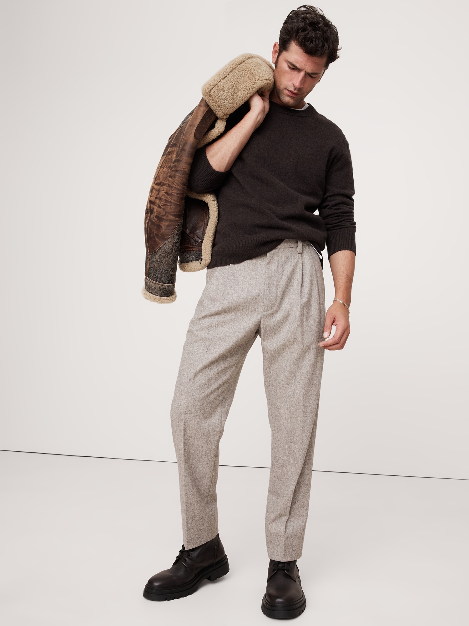This pleated pant is cut from a beautiful wool-blend fabric—one we love for its softness, dressed-up appearance, and all-season weight. We opted for a relaxed silhouette and a cropped inseam length for vintage-inspired appeal.